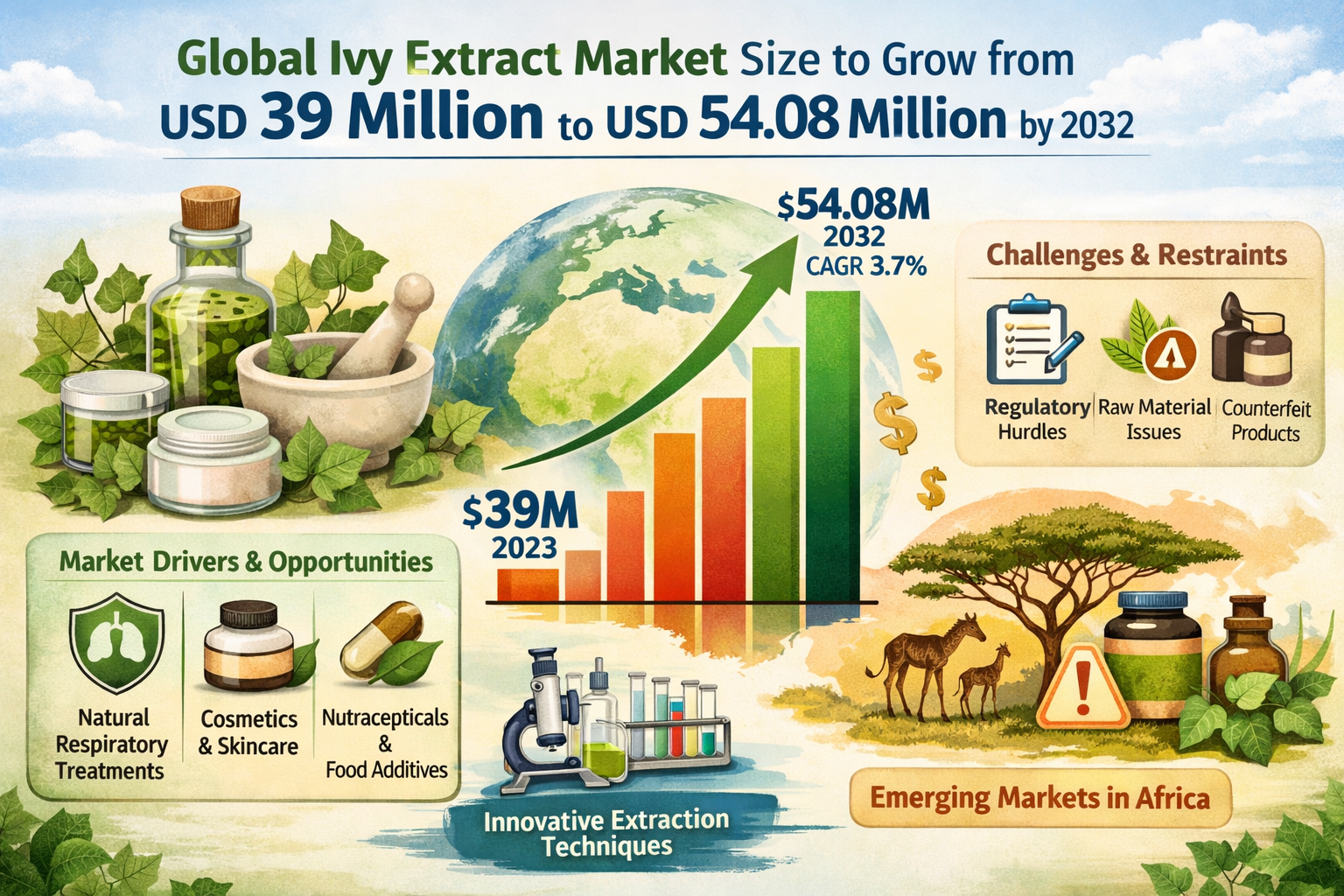 Global Ivy Extract Market Size to Grow from USD 39 Million to USD 54.08 Million by 2032