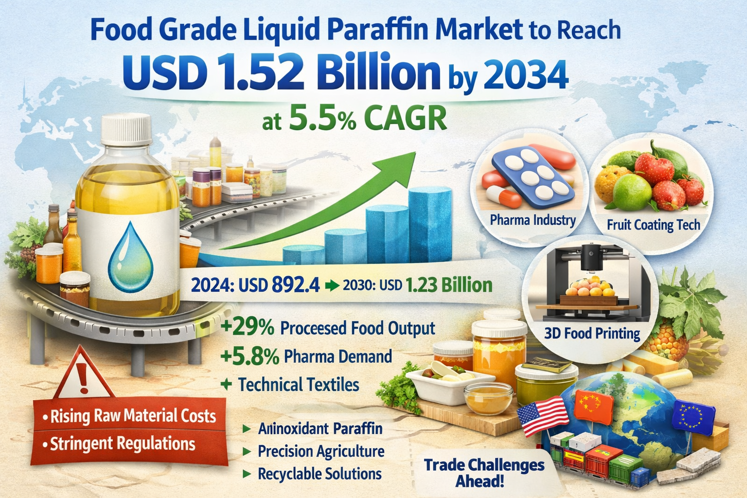 Food Grade Liquid Paraffin Market to Reach USD 1.52 Billion by 2034 at 5.5% CAGR