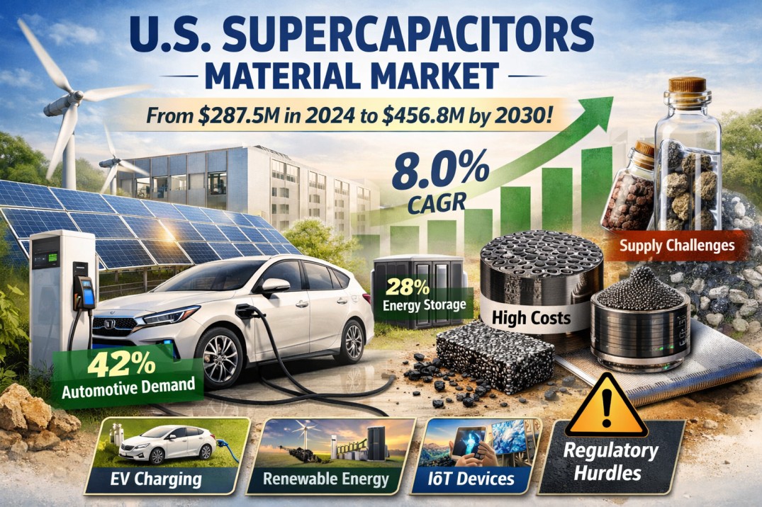 US Supercapacitors Material Market Set to Hit USD 456.8M by 2030 at 8.0% CAGR