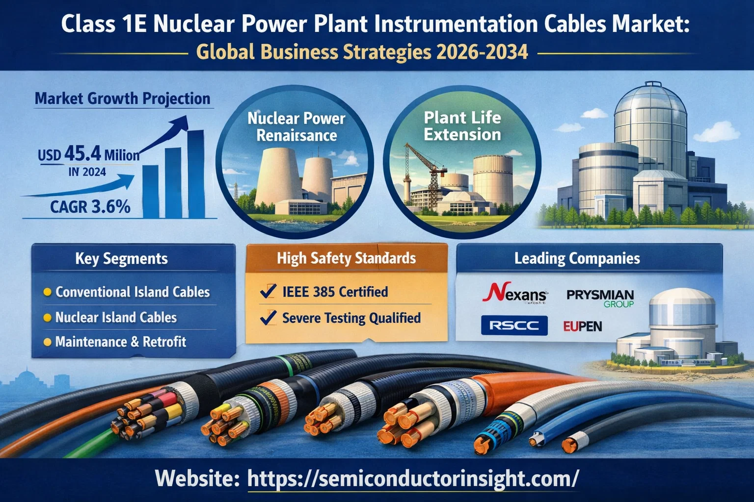 Class 1E Nuclear Power Plant Instrumentation Cables Market, valued at USD 45.4 million in 2024, is poised for steady progression, projected to reach USD 57.7 million by 2032. This expansion, representing a compound annual growth rate (CAGR) of 3.6%, is detailed in a comprehensive new report. These specialized cables are the nervous system of a nuclear facility, carrying critical signals for reactor control, monitoring, and safety systems. Their performance under extreme conditions, including high temperatures, radiation, and potential accident scenarios, makes them a foundational component for safe and reliable nuclear power generation, ensuring operational integrity that regulators and operators depend upon. Class 1E instrumentation cables are engineered to provide an independent safety circuit, remaining fully functional during and after a design-basis event to allow for safe reactor shutdown and monitoring. Their essential role in ensuring the fail-safe operation of a nuclear plant makes them indispensable for modern nuclear infrastructure. The rigorous qualification process these cables must undergo, which includes severe environmental and seismic testing, underscores their criticality. As the global energy landscape increasingly recognizes nuclear power for its low-carbon baseload capabilities, the demand for these highly reliable components is set to grow, albeit at a measured pace reflective of the long-term nature of nuclear investments. Nuclear Power Renaissance and Plant Life Extension: Dual Growth Engines The report identifies a dual-thrust dynamic driving the Class 1E cable market. On one front, there is a global resurgence in nuclear energy investment, particularly in the Asia-Pacific region. Countries are aggressively building new-generation reactors to meet decarbonization goals and ensure energy security. Concurrently, in established markets like North America and Europe, there is a strong focus on extending the operational life of existing nuclear fleets, which requires comprehensive modernization and replacement of aging cable infrastructure. This combination of new builds and life-extension programs creates a stable, long-term demand pipeline. "The stringent regulatory environment governing nuclear safety is the single most influential factor shaping this market," the report emphasizes. "Qualification to standards like IEEE 383 is not merely a recommendation but a mandatory gateway for any supplier, creating exceptionally high barriers to entry. This ensures that market leadership is held by companies with decades of proven performance and deep-rooted relationships with major utility operators and reactor vendors." This dynamic prioritizes long-term reliability and technical pedigree over cost, fostering a highly specialized and consolidated supplier ecosystem. Download FREE Sample Report: Class 1E Nuclear Power Plant Instrumentation Cables Market - View in Detailed Research Report Market Segmentation: Conventional Island Cables and Maintenance Applications Dominate The report provides a detailed segmentation analysis, offering a clear view of the market structure and key growth segments. Segment Analysis: By Type Conventional Island Cable Nuclear Island Cable By Application Outside The Reactor Inside The Reactor Others By End User Nuclear Power Plant Operators Engineering, Procurement, and Construction (EPC) Firms Maintenance and Service Providers By Safety Certification IEEE 383 Certified Cables Other International Standards Plant-Specific Qualified Cables By Installation Type New Build Installations Retrofit & Modernization Projects Maintenance Replacement Competitive Landscape: A Realm of Specialized Expertise The global Class 1E Nuclear Power Plant Instrumentation Cables market is characterized by a high degree of consolidation, with the top four manufacturers collectively holding over 55% of the market share. This dominance is attributed to the significant technical expertise, rigorous quality assurance protocols, and extensive certifications required to supply cables for nuclear safety applications. Nexans and General Cable (now part of Prysmian Group) are established global leaders, benefiting from long-standing relationships with major reactor vendors and utility operators. These players set the benchmark for product reliability, which is paramount in an environment where cable failure is not an option. Beyond these dominant players, a cadre of specialized manufacturers occupies significant niches, often with strong regional focuses. Companies such as RSCC Wire & Cable and Kabelwerk Eupen are key suppliers in the European and North American markets. In the rapidly expanding Asia-Pacific region, local players are ascending, supported by domestic nuclear power expansion programs and a strategic push for supply chain localization. These companies compete by offering highly engineered solutions tailored to specific reactor designs and regional regulatory requirements. List of Key Class 1E Nuclear Power Plant Instrumentation Cables Companies Profiled Nexans General Cable (Prysmian Group) RSCC Wire & Cable Habia Cable TMC Kabelwerk Eupen Shangshang Cable Bayi Cable Orient Wires & Cables Huaguang Cable Anhui Cable Tiankang Elsewedy Electric NKT Group Sumitomo Electric Industries These companies are focusing on developing advanced materials with enhanced longevity and radiation resistance, while also pursuing geographic expansion to align with global nuclear construction hotspots. Emerging Opportunities in Advanced Reactor Technologies While the market is mature, it is not static. Significant opportunities are emerging with the development of next-generation nuclear technologies. The advancement of Small Modular Reactors (SMRs) and Generation IV reactor designs presents a new frontier. These reactors often require specialized instrumentation cabling that can withstand different operating environments, such as higher temperatures in advanced coolants. Furthermore, the 